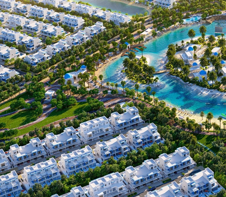 - 20 million sq ft master plan 8 island-themed clusters, green corridors, and distributed amenities